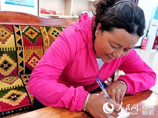 扎西梅朵在認(rèn)真寫字。人民網(wǎng) 李海霞攝