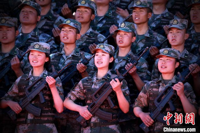 圖為在“嘹亮紅歌獻給黨”主題歌詠比賽中某遠火營女兵合唱沙場之花。普布扎西 攝