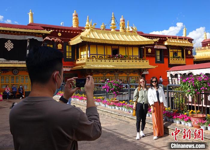 訪問(wèn)團(tuán)成員在拉薩參觀大昭寺。冉文娟 攝