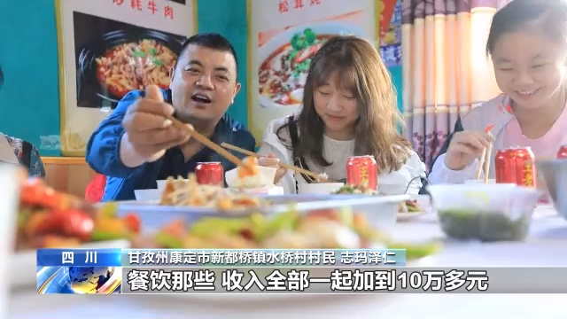 甘孜州康定市新都橋鎮(zhèn)水橋村村民 志瑪澤仁:我有八間房,一間房子80元,一天有三百四百吧,餐飲那些,全部一起加起來10萬多。以前窮得很,旅游的(人)多,318線離我們近得很,現(xiàn)在富起來了。