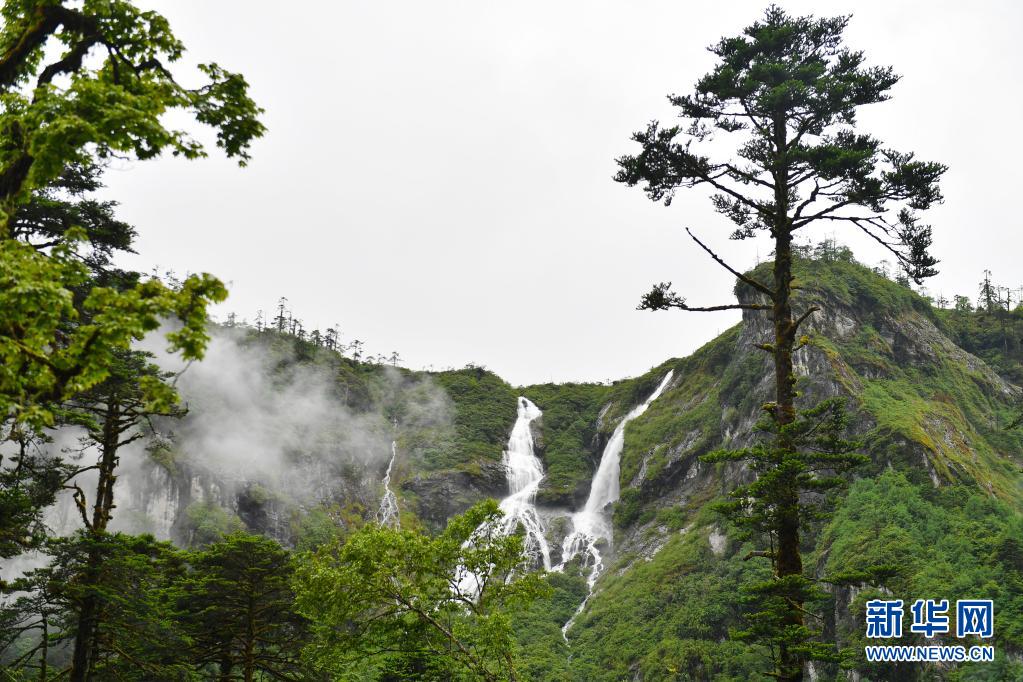這是6月30日拍攝的墨脫縣境內(nèi)的瀑布。新華社記者 孫瑞博 攝