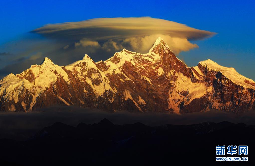 這是2017年12月24日拍攝的夕陽下的南迦巴瓦峰。新華社發(fā)(欒遠春 攝)