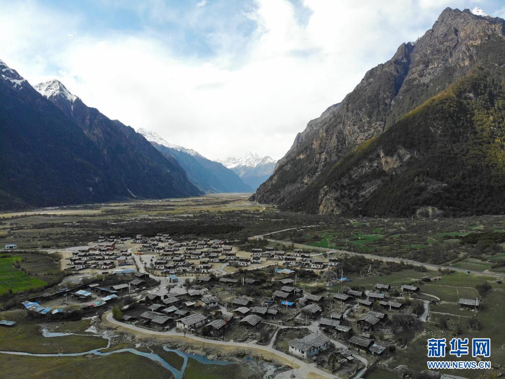 這是4月30日拍攝的林芝市工布江達縣境內(nèi)的古村落錯高村(無人機照片)。新華社記者 孫瑞博 攝