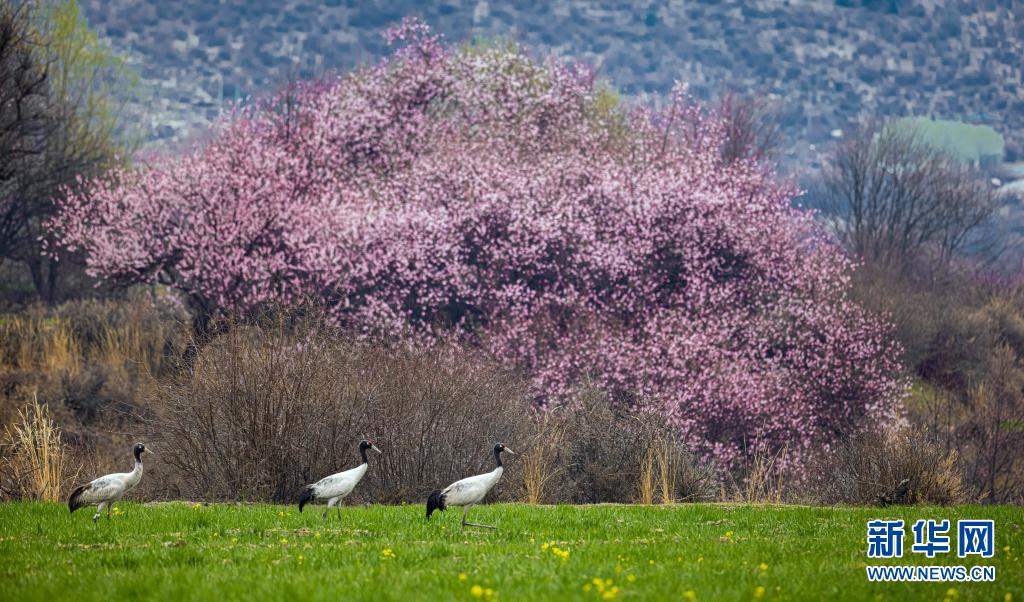 這是3月26日在林芝境內(nèi)拍攝的黑頸鶴。新華社發(fā)(張寧 攝)