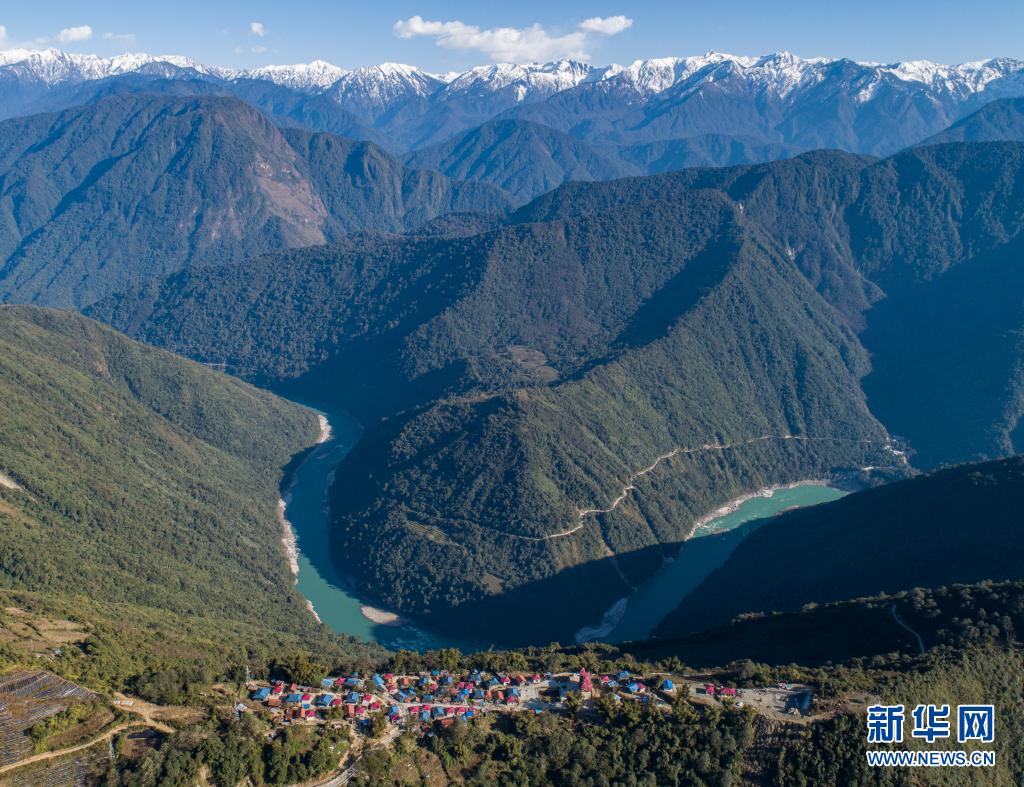 這是2月9日拍攝的位于雅魯藏布江邊的林芝市墨脫縣德興鄉(xiāng)巴登則村(無人機照片)。新華社記者 孫非 攝
