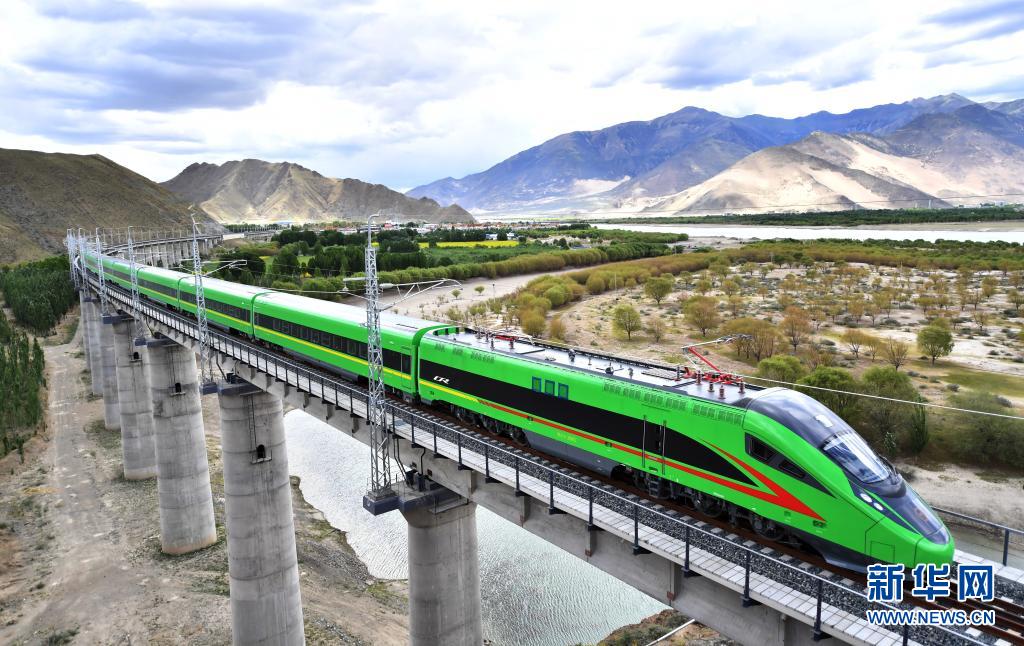 這是6月16日拍攝的行駛在拉林鐵路上的復(fù)興號列車。新華社記者 覺果 攝