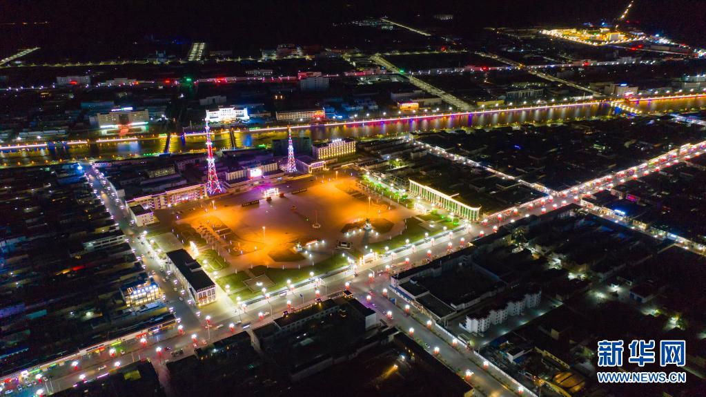 阿里獅泉河鎮(zhèn)夜景(2018年10月3日攝,無人機(jī)照片)。新華社發(fā)(貢覺群培攝)