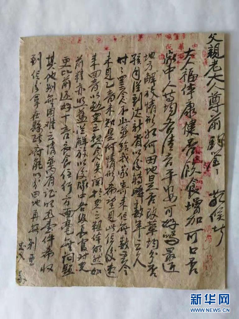 先遣連烈士陳忠義的家書。新華社發(fā)(受訪者供圖)