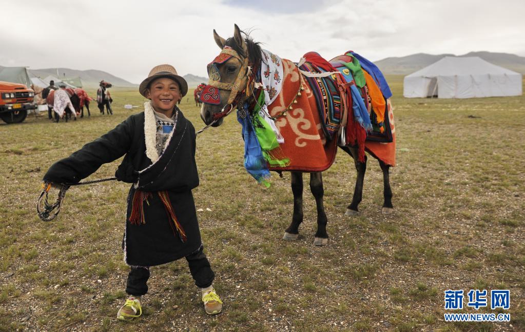 西藏阿里改則縣改則鎮(zhèn)日瑪村一名少年?duì)狂R前行(2018年8月6日攝)。新華社發(fā)(蔡云鋒 攝)