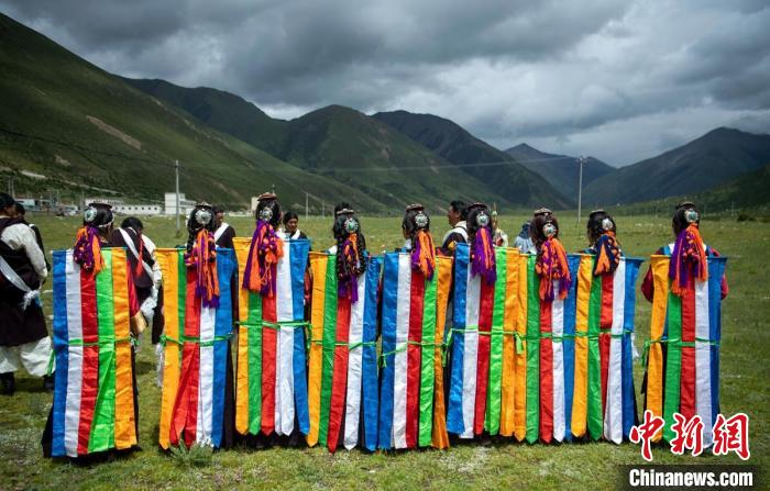 盛夏的西藏自治區(qū)拉薩市墨竹工卡縣門巴鄉(xiāng)仁多崗村草地上,28歲的尼瑪與身著盛裝的藏族牧民們跳著國家級(jí)非物質(zhì)文化遺產(chǎn)直孔普堆巴宣舞,迎接遠(yuǎn)道而來的游客,動(dòng)作優(yōu)美的歌舞吸引了大家駐足觀賞,并用手機(jī)或相機(jī)記錄。