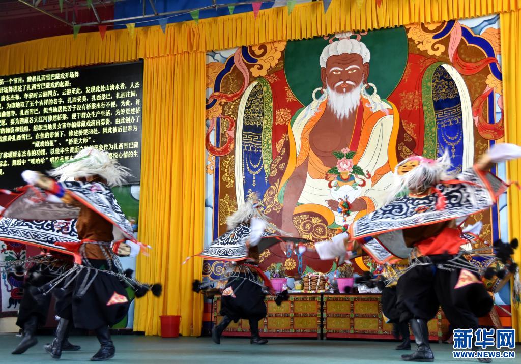 “相傳在公元15世紀(jì),藏戲創(chuàng)始人唐東杰布募資修橋時(shí)途經(jīng)這里,創(chuàng)作了雅礱扎西雪巴藏戲,600多年來(lái)傳唱不息,因此這里也被譽(yù)為‘藏戲第一村’。”扎西曲登社區(qū)居委會(huì)主任尼瑪次仁向記者介紹。