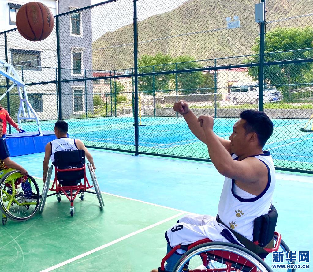“走,打籃球去!”坐在輪椅上的覺列趁著周末,招呼他的朋友們來到拉薩市殘疾人托養(yǎng)中心的籃球場打球。