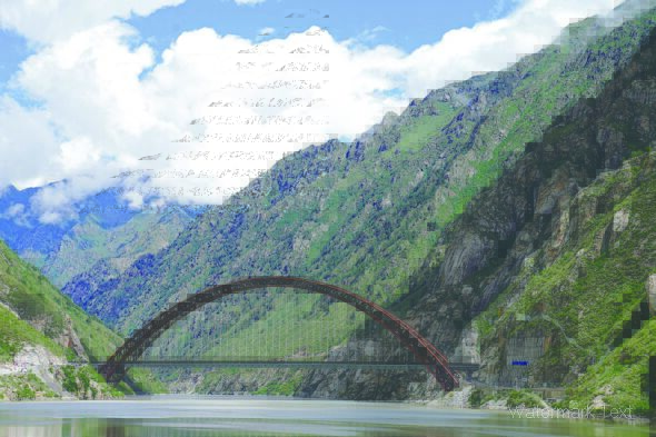 藏木雅魯藏布江雙線特大橋全長(zhǎng)525.1米,主拱跨徑430米(2021年7月11日攝)。新華社記者 劉洪明 攝