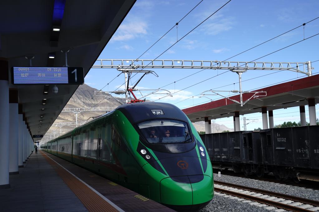 拉林鐵路動車組停靠在山南車站(2021年6月21日攝)。新華社記者劉洪明 攝