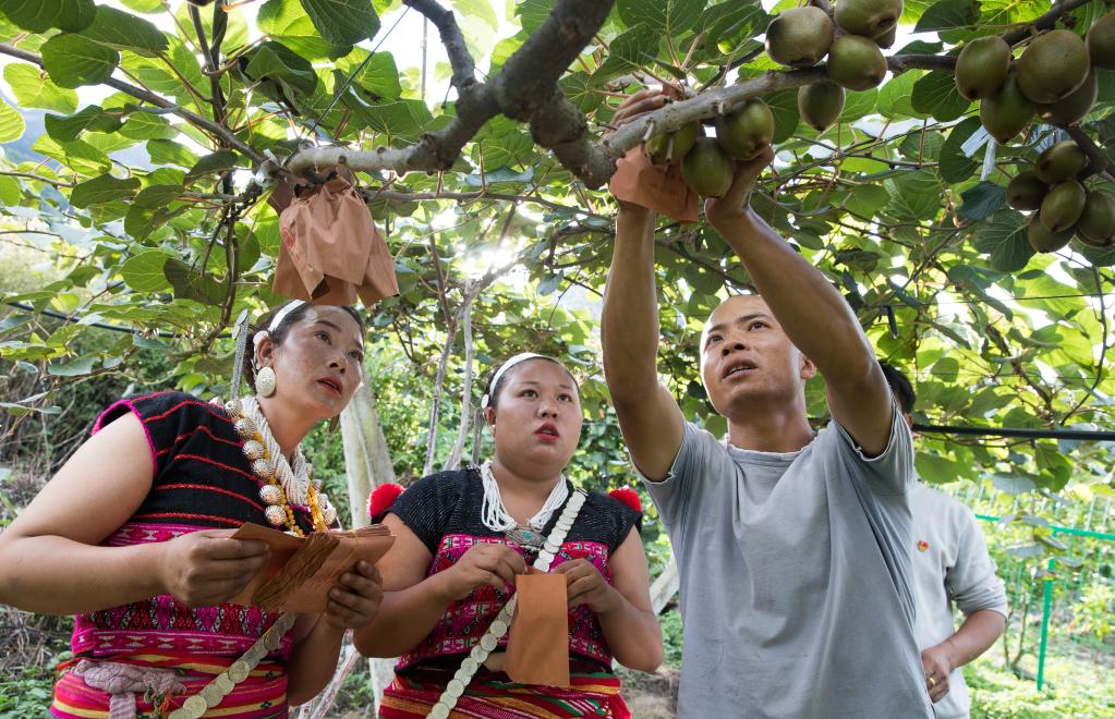 林芝市察隅縣與印度和緬甸毗鄰。走進下察隅鎮(zhèn)僜人新村,綠油油的獼猴桃田掩映著一座座新居。