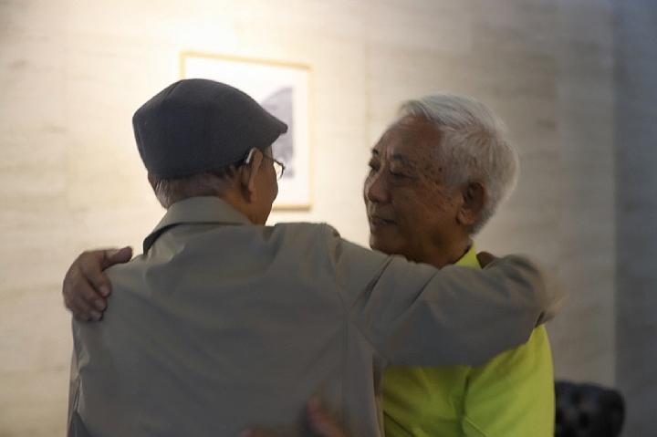 6月2日,畫展閉幕當天,已經(jīng)88歲的梁世雄在家人的陪伴下來到畫展,與75歲的其加達瓦重逢,兩人細數(shù)當年進藏情景感慨萬千。