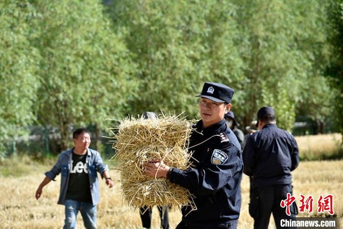 “如果不是移民警察幫忙收割倒地的小麥,不是他們幫著拾撿地上的麥稈垛,我們家這片地的麥子沒這么快收完,太感謝拉薩出入境邊防檢查站的民警們了?!笨粗墒斓柠溩宇w粒歸倉,西藏自治區(qū)拉薩市才納鄉(xiāng)協(xié)榮村村民邊巴次仁說。