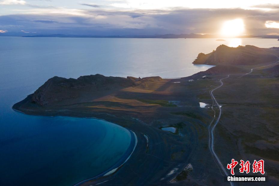 夕陽(yáng)的余暉照耀在納木錯(cuò)湖岸半島上。 江飛波 攝