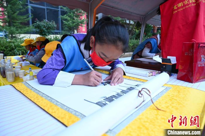 圖為學(xué)生在寫藏文書法?!≮w朗 攝