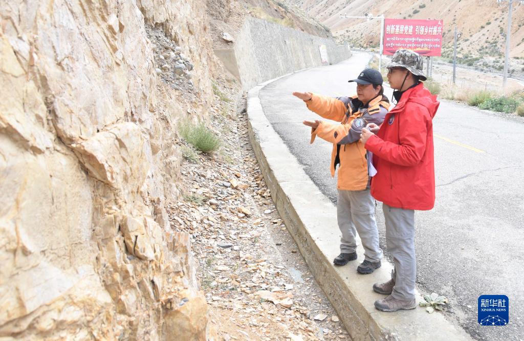 9月9日,在西藏阿里地區(qū)內(nèi)的喜馬拉雅山脈,中科院地理科學(xué)與資源研究所客座教授李渝生(左)和年輕的科考隊(duì)員觀察地貌。新華社記者 杜剛 攝