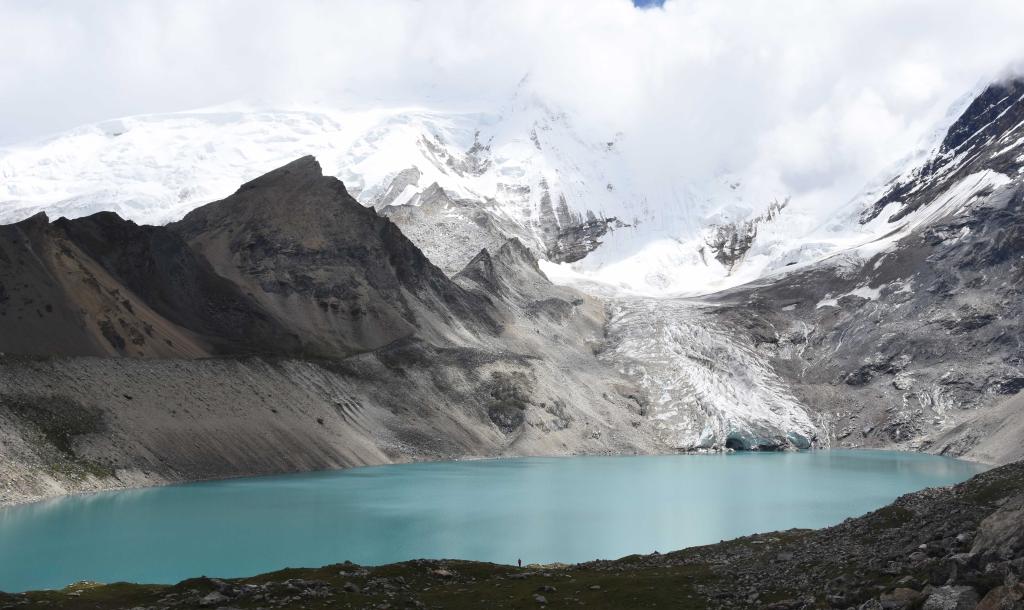 西藏日喀則市亞東縣境內(nèi),超過海拔5000米的冰川下有一個(gè)湖泊——朗錯(cuò)。通過分析壩體形態(tài)特征,科考隊(duì)初步分析判斷這是一個(gè)冰川終磧體形成的堰塞湖,即冰湖。冰湖是喜馬拉雅山脈常見的堰塞湖類型之一。