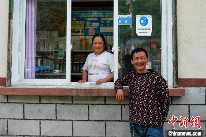 資料圖為西藏墨脫縣墨脫鎮(zhèn)門巴族扎巴和妻子梅朵曲珍在自家小商店門口,墨脫公路通車前扎巴是一位背夫?!〗w波 攝