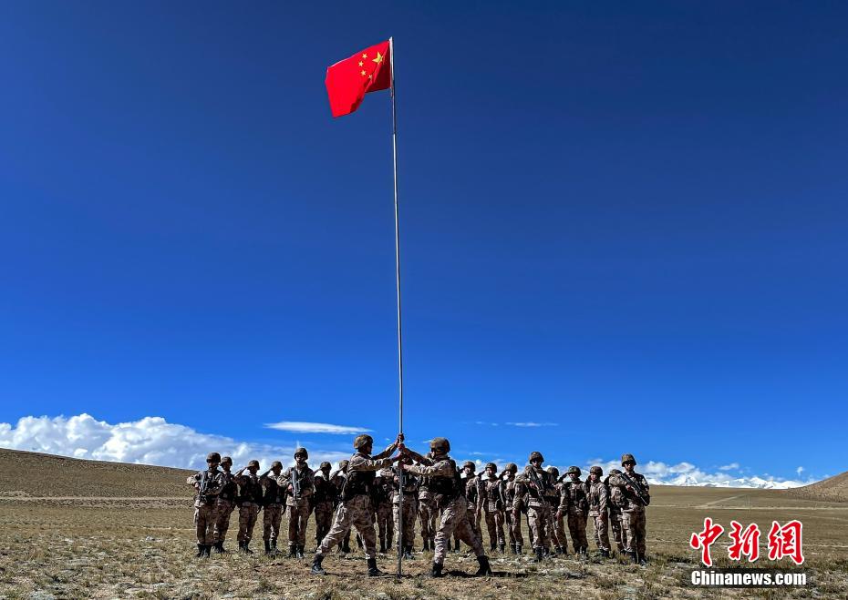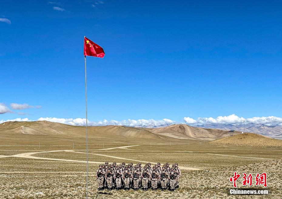 10月1日,西藏軍區(qū)某旅駐守在海拔4800米的任務(wù)分隊(duì)官兵組織升國(guó)旗儀式慶祝國(guó)慶節(jié)到來(lái)。高原戰(zhàn)士用最特別的方式,向偉大祖國(guó)表達(dá)熱愛(ài)。王述東 攝