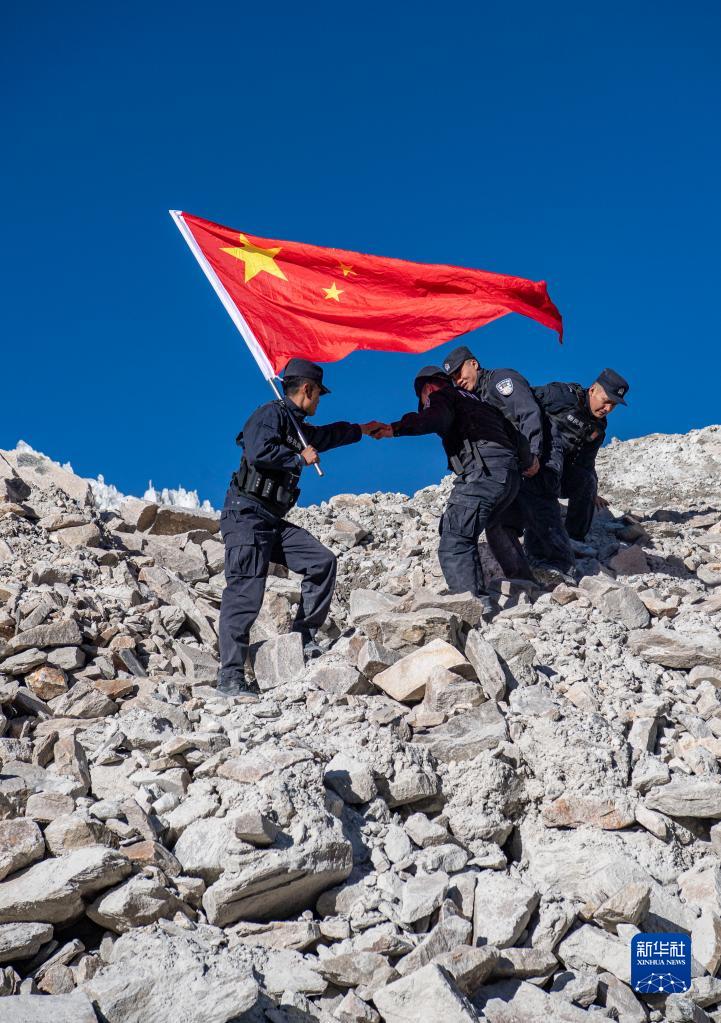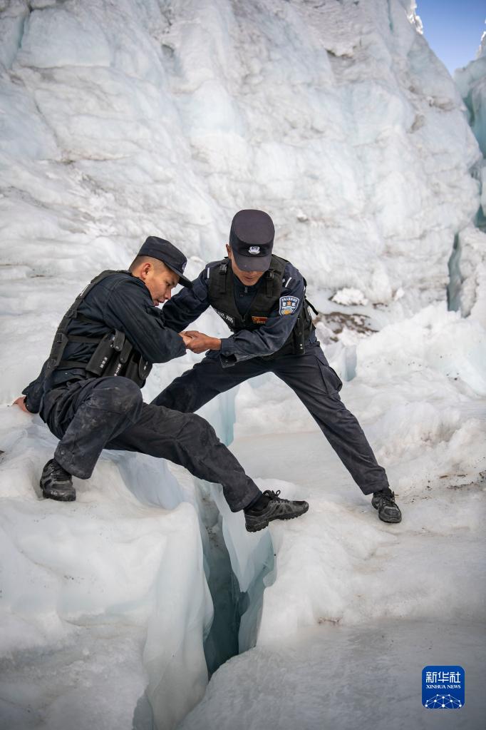普瑪江塘邊境派出所的移民管理警察在崗布冰川附近巡邏(11月20日攝)。新華社記者 孫非 攝