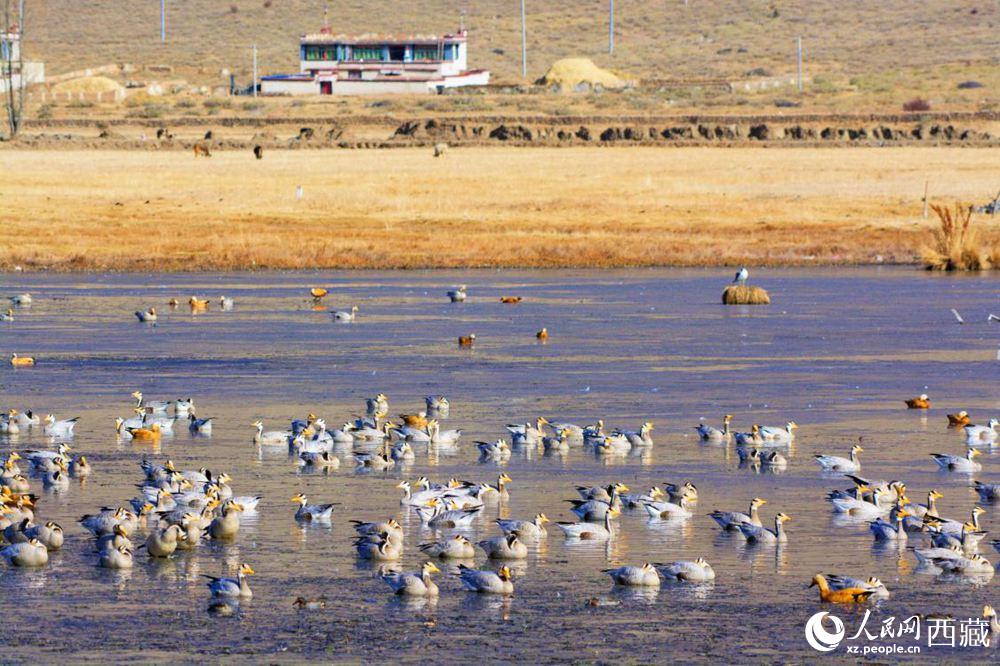 近年來(lái),西藏不斷加大野生動(dòng)物保護(hù)力度,維護(hù)生物多樣性,越冬水鳥種群數(shù)量呈逐年上升趨勢(shì)。西藏中南部“一江三河”流域的河谷、農(nóng)田是越冬水鳥的主要夜宿地和覓食地。今年年初,西藏自治區(qū)高原生物研究所在該流域開展了越冬水鳥的監(jiān)測(cè)工作,共記錄越冬水鳥42種,17萬(wàn)余只,其中絕大部分為冬候鳥。在數(shù)量方面,以斑頭雁和赤麻鴨為代表的農(nóng)田活動(dòng)水鳥為主,斑頭雁數(shù)量超過(guò)10萬(wàn)只。此外,國(guó)家一級(jí)保護(hù)動(dòng)物黑頸鶴的種群數(shù)量維持在8600只以上。