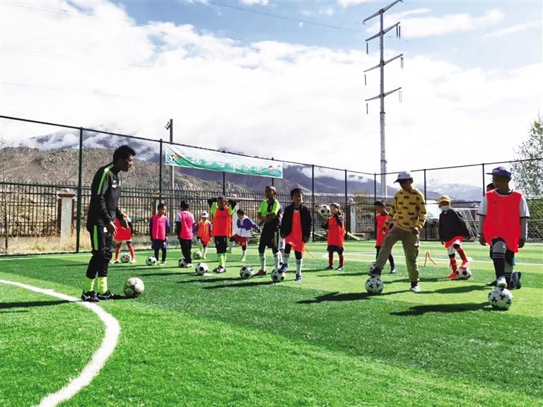 孩子們正在上足球課。圖由拉薩市青少年實踐基地提供