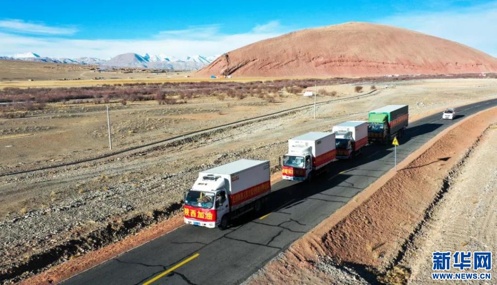 1月7日上午,4輛披著“陜西加油”橫幅的貨車(chē)滿載著防瘟香囊、鮮羊肉、礦泉水等援助物資,從西藏阿里地區(qū)發(fā)車(chē)駛向陜西省,為三秦大地送去雪域高原的祝福。
