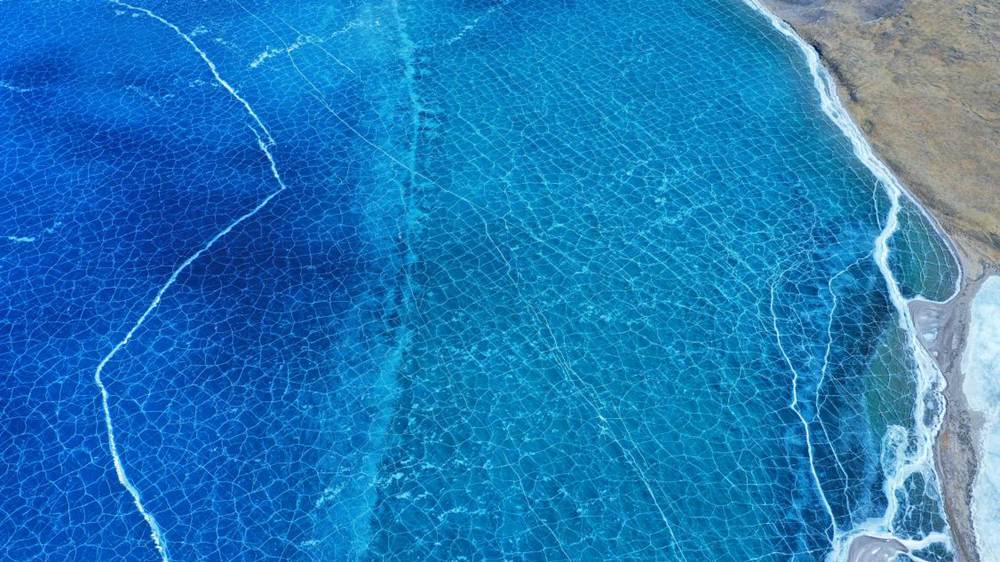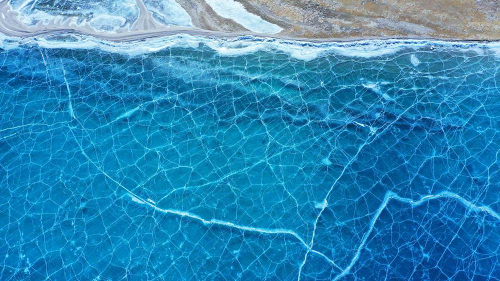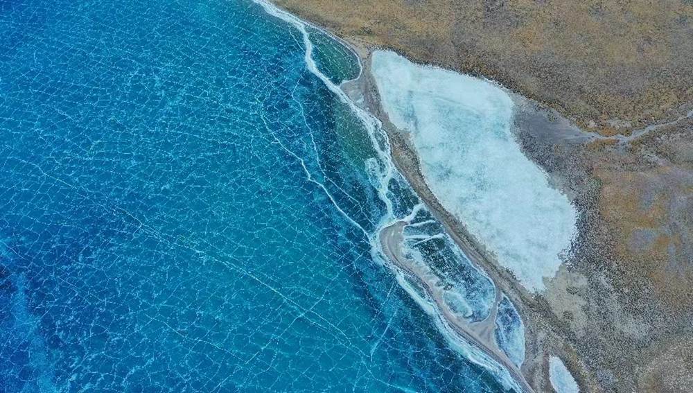 位于西藏山南市洛扎縣和浪卡子縣交界處的普莫雍錯,是喜馬拉雅山脈間的一個咸水湖,湖面海拔5070m。冬季的普莫雍錯湖面會結冰,冰面通透可見湖底,在陽光的照射下,呈現(xiàn)出動人心魄的藍。
