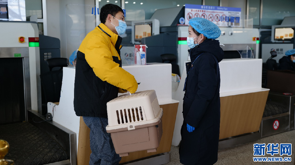 1月17日,拉薩貢嘎機(jī)場內(nèi)旅客正在向工作人員咨詢寵物托運(yùn)事宜。新華網(wǎng) 貢桑央吉(實(shí)習(xí)生) 攝