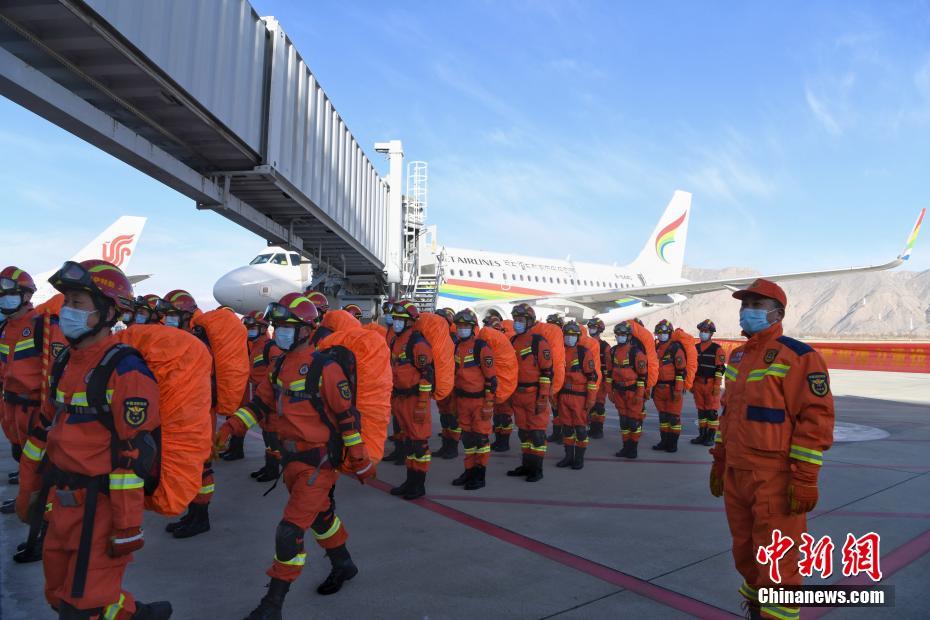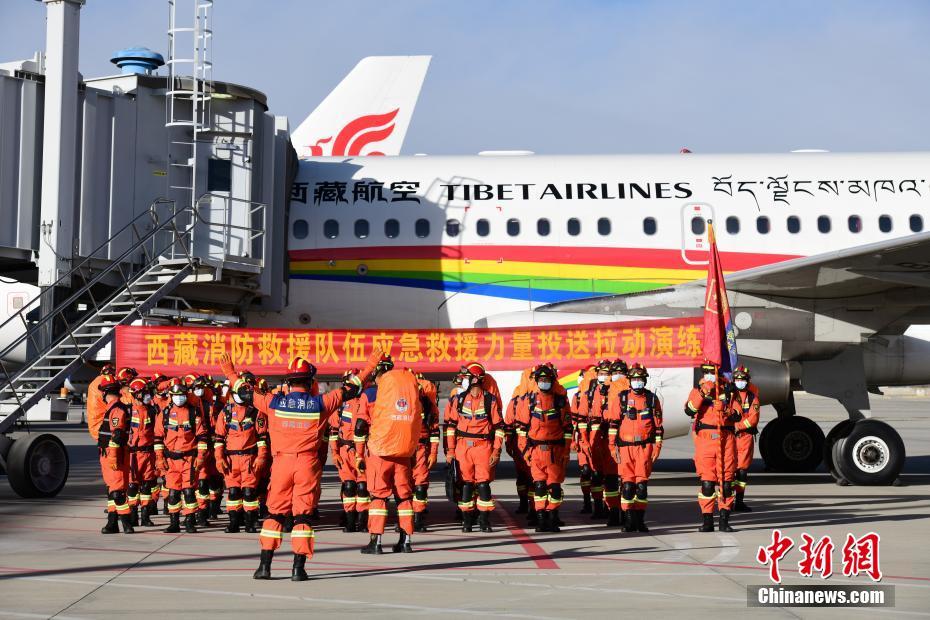 1月20日,西藏自治區(qū)消防總隊(duì)在拉薩貢嘎國際機(jī)場開展2022年跨區(qū)域地震災(zāi)害應(yīng)急救援力量投送拉動(dòng)演練。據(jù)悉,演練投送的裝備主要為個(gè)人72小時(shí)保障物資、通信器材和輕便型的相關(guān)救援器材。 中新社記者 貢嘎來松 攝