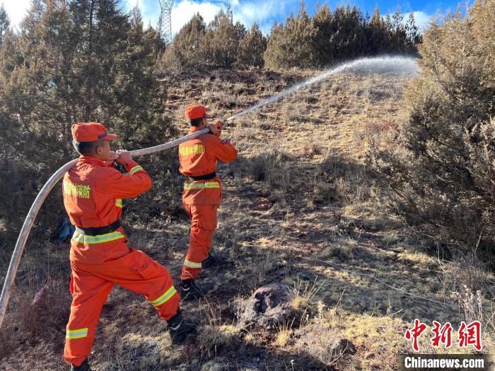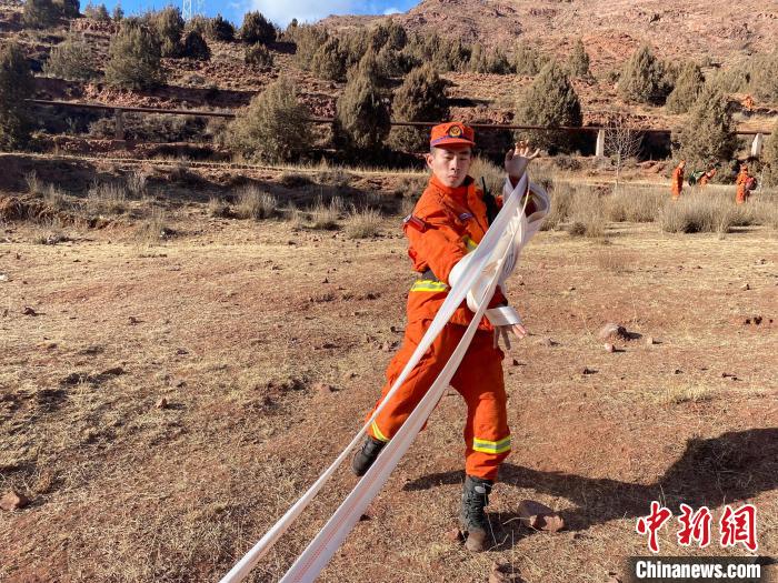 圖為消防指戰(zhàn)員撤收管帶。江達(dá)縣森林消防中隊(duì)貢覺駐防分隊(duì) 供圖