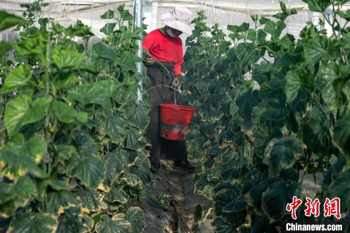 圖為農牧民采摘黃瓜。江飛波 攝