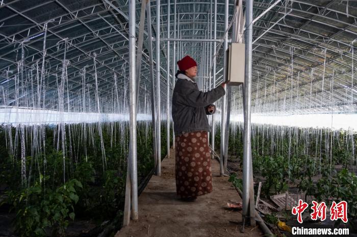 “每天上午要把這些保溫被收起來,天黑前再放下,這樣棚里的菜才能安全過冬?!?月28日,在西藏日喀則珠峰現(xiàn)代農業(yè)科技創(chuàng)新博覽園蔬菜大棚內,白朗縣農牧民潘多一邊操作卷被機一邊向中新網(wǎng)記者介紹,現(xiàn)正處于農歷春節(jié)和日喀則藏歷農事新年前,大棚一如往常,每天按供需采摘,保障市場蔬菜供應。