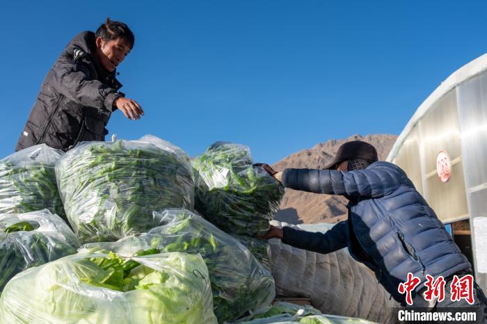 圖為當?shù)剞r牧民轉運剛采摘的大棚蔬菜前往日喀則市區(qū)。江飛波 攝