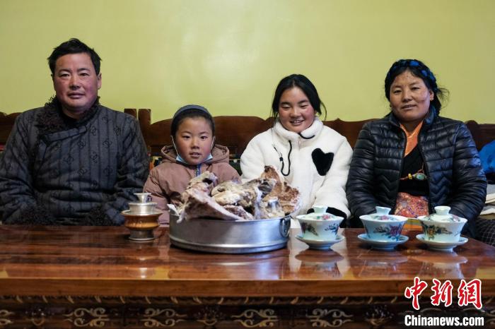 圖為1月27日,李富華(左一)一家在日喀則白朗縣的家里合影。江飛波 攝