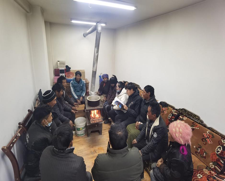 屋外寒氣逼人,屋內(nèi)爐火正旺。村民們一邊聽著宣講一邊討論,從對全會精神的學習領悟到周圍生活環(huán)境的改善,從卡普村的溫室大棚收入到對2022年的發(fā)展期許,大家爭先恐后訴說著自己的感受與想法,興頭十足。