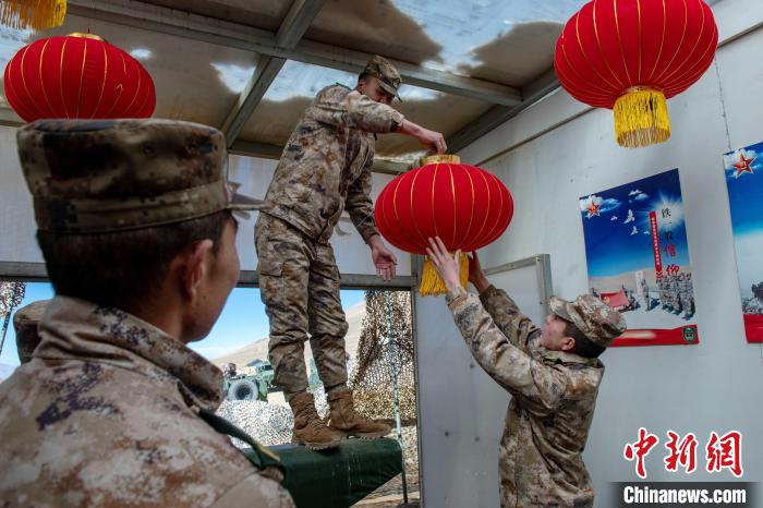 圖為官兵裝點(diǎn)布置營(yíng)區(qū),營(yíng)造春節(jié)氛圍?!⊥跏鰱| 攝