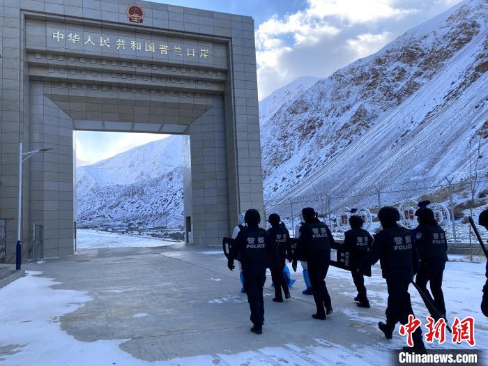 圖為普蘭邊檢站民警在邊境國門巡邏?!「駸帷z