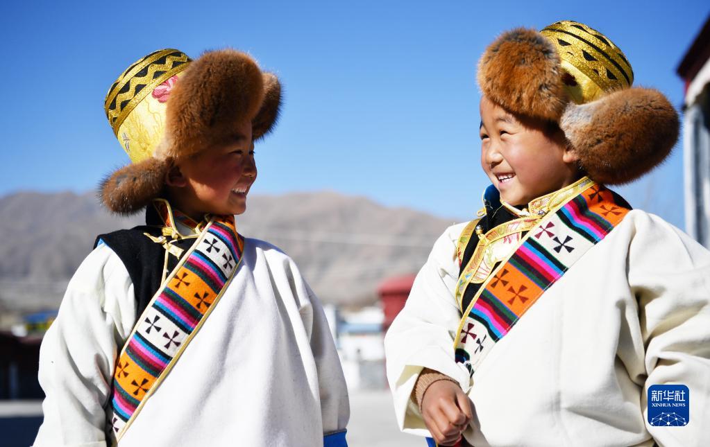 3月3日,西藏山南市貢嘎縣崗堆鎮(zhèn)群眾身著藏裝歡度藏歷水虎新年。新華社記者 覺果 攝