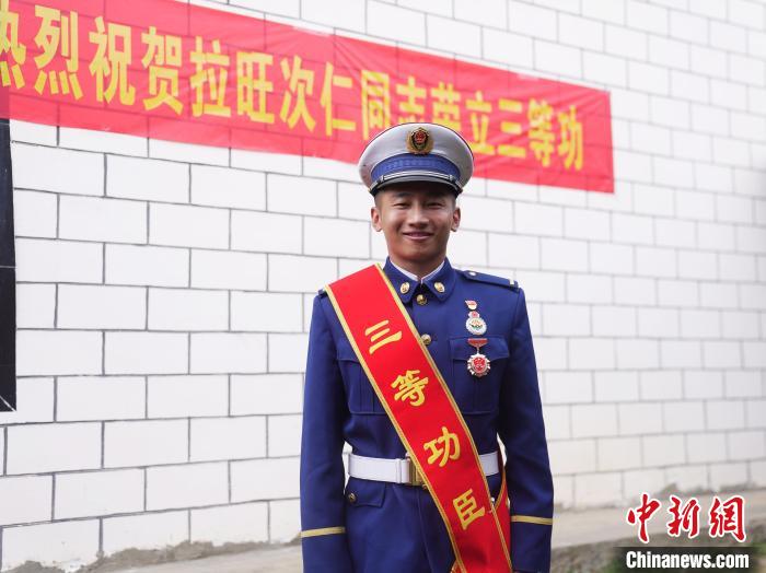 圖為消防員拉旺次仁。侯杰 攝