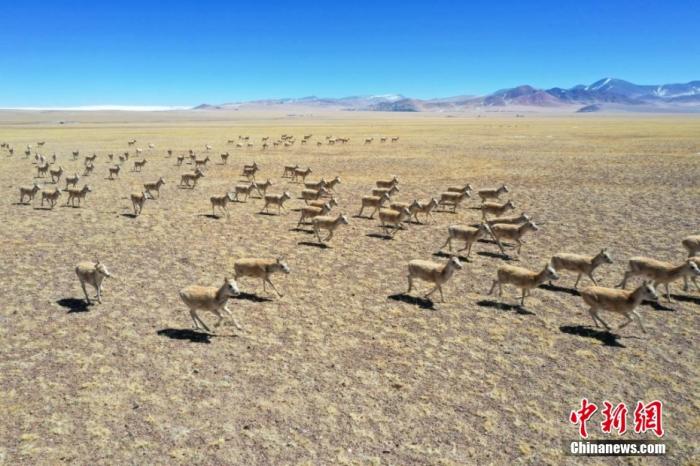 近日,西藏阿里地區(qū)改則縣境內(nèi)出現(xiàn)近萬頭藏羚羊聚集現(xiàn)象?!爸袊吘骋吧镄l(wèi)士”榮譽稱號獲得者強巴次仁向中新社記者介紹,這與保護成效、生態(tài)向好、棲息地安全等分不開。