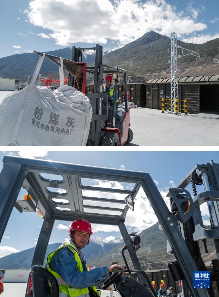 拼版照片:上圖為3月29日,邊巴在林芝站貨場(chǎng)搬運(yùn)貨物;下圖為邊巴在駕駛叉車。朵當(dāng)村的村民邊巴跟人合伙開(kāi)了一家物流公司,將抵達(dá)火車站的飼料、日用百貨、建筑材料等運(yùn)往林芝各地,他每天都會(huì)通過(guò)微信召集周邊的年輕人來(lái)貨場(chǎng)干活。邊巴說(shuō),他對(duì)未來(lái)充滿希望,拉林鐵路貨運(yùn)量不斷增加,自己和村民的收入會(huì)越來(lái)越好。新華社記者 洛卓嘉措 攝