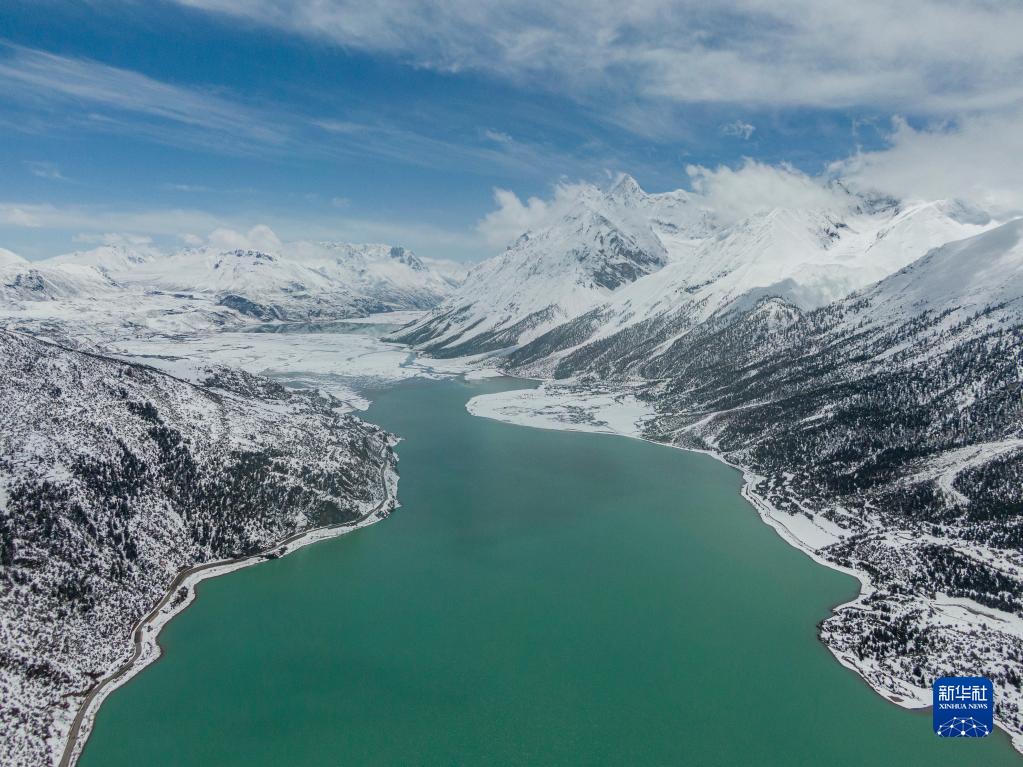 這是無人機(jī)拍攝的然烏湖(4月18日攝)。新華社記者 孫非 攝