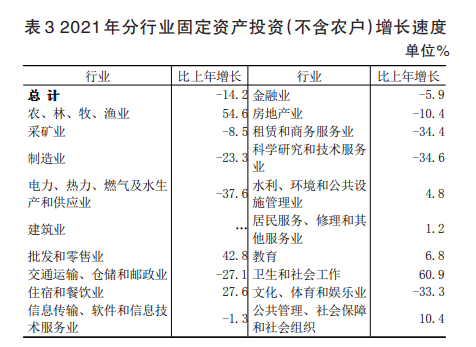 全年固定資產(chǎn)投資總額比上年下降14.2%。按產(chǎn)業(yè)分,第一產(chǎn)業(yè)投資增長(zhǎng)56.3%,第二產(chǎn)業(yè)投資下降29.7%,第三產(chǎn)業(yè)投資下降13.1%。按經(jīng)濟(jì)類(lèi)型分,國(guó)有經(jīng)濟(jì)投資下降12.5%,集體經(jīng)濟(jì)投資增長(zhǎng)21.0%,個(gè)體經(jīng)濟(jì)投資下降78.2%,其他各種經(jīng)濟(jì)類(lèi)型投資增長(zhǎng)53.6%。全年民間投資增長(zhǎng)0.7%。