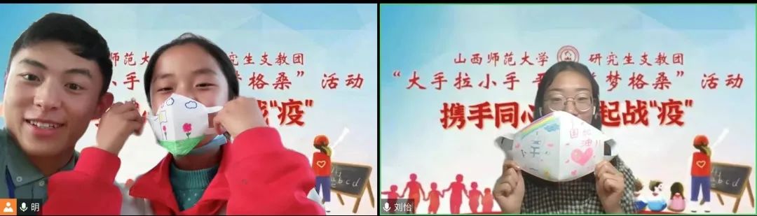 連線中,孩子們主動(dòng)關(guān)心我校志愿者的在校情況,孩子們充滿關(guān)切的眼神讓志愿者們紛紛動(dòng)容。志愿者們也向孩子們?cè)敿?xì)的介紹了防疫自護(hù)知識(shí),結(jié)合視頻、圖片等形式生動(dòng)講述了團(tuán)結(jié)一心、眾志成城的抗疫故事,向所有抗疫英雄們致敬,同時(shí)引導(dǎo)孩子們要深刻認(rèn)識(shí)到作為一名中國人的幸福,勉勵(lì)孩子們永遠(yuǎn)要團(tuán)結(jié)在一起,共克時(shí)艱,遠(yuǎn)在西藏也要做好防護(hù),一字一句中滿是擔(dān)心和牽掛。隨后,孩子們拿出早已準(zhǔn)備好的工具與志愿者們一同制作了口罩,口罩上寫滿了對(duì)哥哥姐姐的關(guān)心、祝福,天真可愛的臉龐上寫滿了戰(zhàn)勝疫情的決心。連線最后,孩子們將精心準(zhǔn)備的才藝表演給志愿者們,是鏗鏘有力的《少年中國說》,是活潑動(dòng)人的《給你一個(gè)擁抱》,是真誠溫暖的《聽我說謝謝你》,或許是那不太流暢的表達(dá)、不太連貫的動(dòng)作,讓遠(yuǎn)隔3700公里的傳遞更加有了溫度,讓兩顆互相牽掛的心靠的更近。