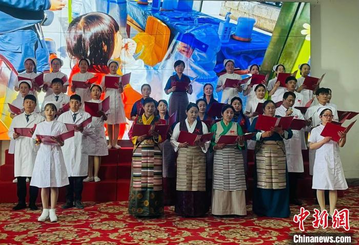 西藏自治區(qū)人民醫(yī)院老中青護(hù)士代表演繹詩(shī)朗誦《提燈女神的贊歌》?!∪轿木?攝
